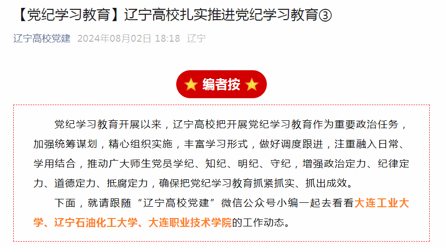 辽宁高校党建微信公众号:https://mp.weixin.qq.com/s/jTgUNASznFTURdLTOV4MTA