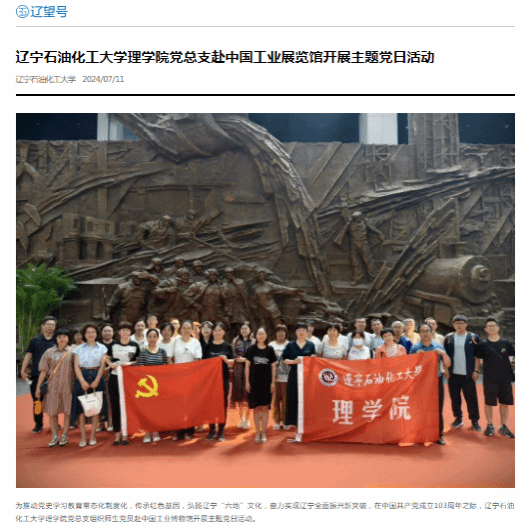 编者按:7月11日,辽宁日报·辽望号、人民日报客户端·人民号对我校理学院党总支组织师生党员赴中国工业博物馆开展主题党日活动进行了宣传报道。现将相关报道转载如下: