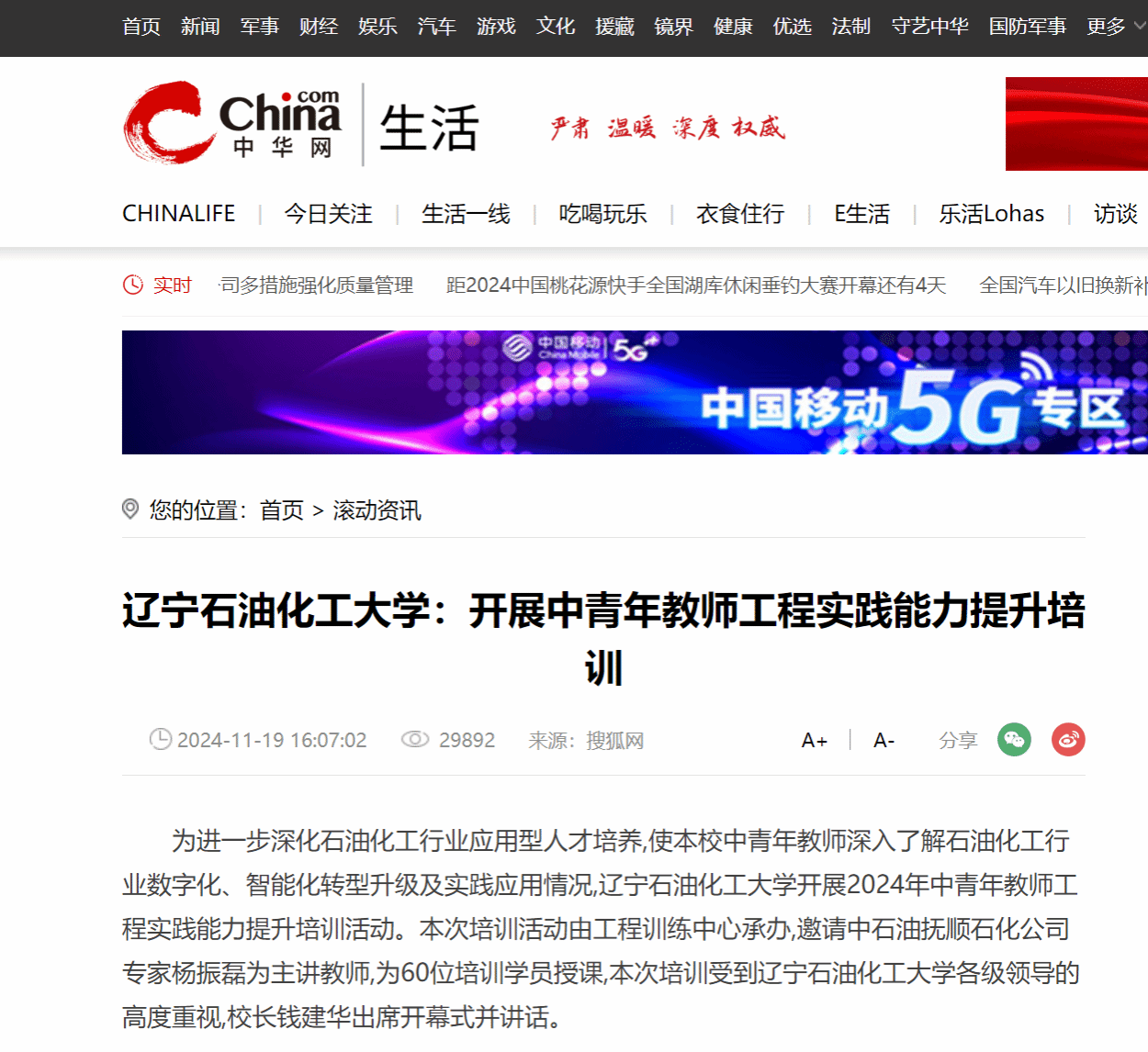编者按:11月19日,中华网对我校开展中青年教师工程实践能力提升培训进行了宣传报道。现将相关报道转载如下: